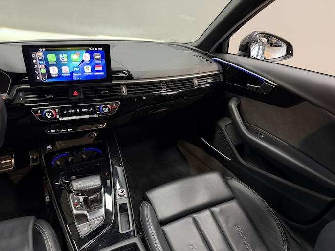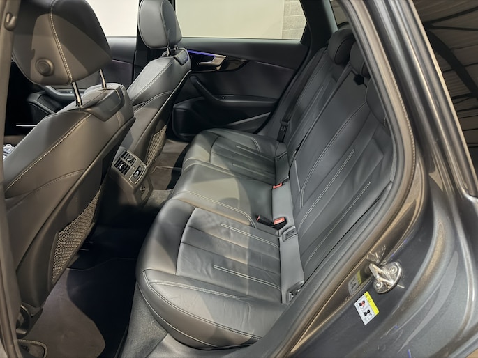 De Audi A4 Avant, met zijn stijlvolle uitstraling en comfortabele interieur, kenmerkt het handelsmerk van Duitse topkwaliteit. Grijze muizen zijn er al genoeg. Daarom heeft deze auto een lekker pittige S-Line styling. Met zijn benzinemotor en automatische transmissie is dit een prima auto voor nog vele kilometers. Houdt u van een luxe uitstraling? Dan is het lederen interieur een heel aantrekkelijke extra! De verwarmbare voorstoelen zijn een weldaad voor rug en schouders. Pittig rijden wordt nog comfortabeler dankzij de fraaie sportstoelen. Dat noemen ze nou een ruimtelijk effect: het elektrisch bediende glazen panoramadak. De achterklep opent automatisch met een druk op de knop. Handig als u met volle handen staat. Bij de uitrusting van deze Audi horen onder meer 18 inch lichtmetalen velgen, LED koplampen, sportonderstel, halflederen bekleding, warmtewerend glas en dakspoiler.