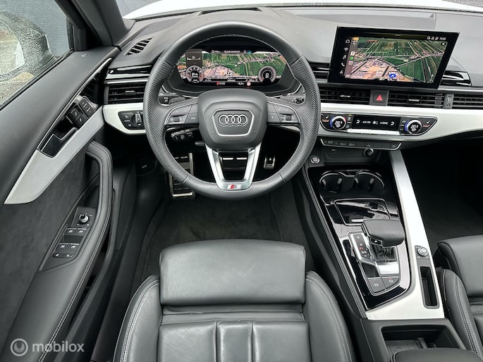 Zoekt u een leuke, betrouwbare, luxe en unieke personenauto!? Dan biedt deze Audi A4 u zoveel leuks voorzien van unieke Gletscher White Pearl kleurstelling met zwarte buiten element voorzien van 19 inch lichtmetalen velgen. De kleurstelling met zwarte buiten elementen maakt deze Audi A4 tot een echte blikvanger. Verder is de Audi A4 voorzien van 3x S-line pakket, Panoramadak - Schuifdak, Groot multi media scherm voorzien van navigatie met android en apple carplay, virtual cockpit, Head up display, keyless entry, airco/climate control, elektrisch ramen voor en achter, blindspot monitor, parkeersensoren voor en achter, achteruitrijcamera, cruise control met radar functie, matrix led verlichting, volledig lederen interieur met elektrische stoelstelling met memory seats, elektrische kofferklep, stuurwiel bediening, standkachel voor het voorverwarmen van de auto, elektrisch wegklapbare trekhaak. Alarm klasse 5 systeem met voertuig volg systeem, S-line interieur, en nog veel meer! Deze personenauto is voorzien van alle documentatie en heeft twee sleutels.