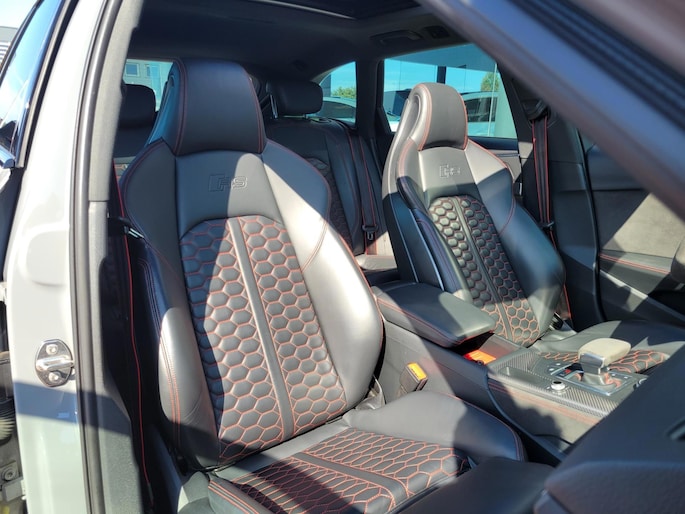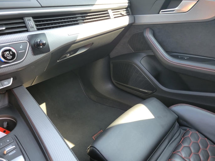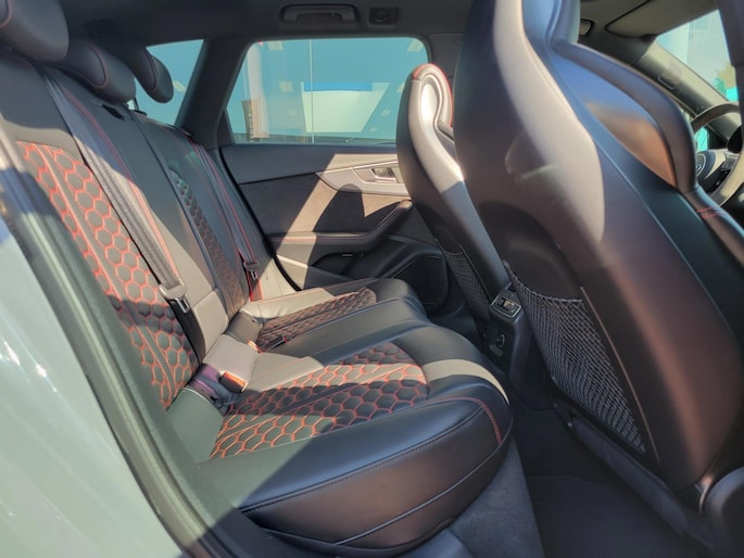 Verder is deze RS4 uitgerust met een panoramadak, ambienteverlichting, een Bang & Olufsen premium audiosysteem en rood gespoten remklauwen, wat de sportieve uitstraling van de auto nog eens extra benadrukt.