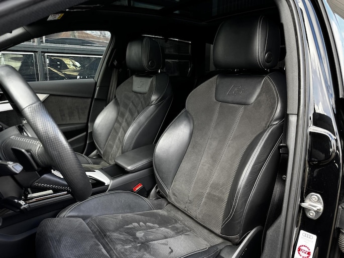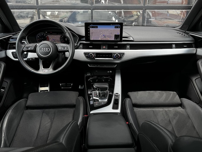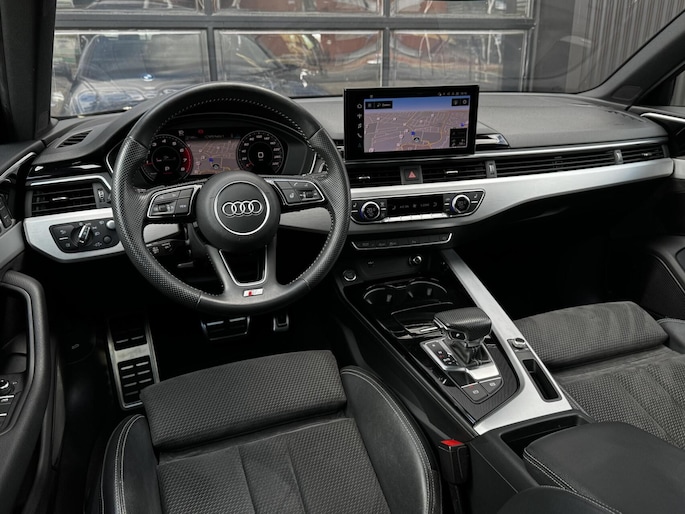 We mogen weer een fantastisch uitgevoerde Audi A4 Avant 40 TFSI aan de collectie toevoegen. Gehuld in een jasje van ‘Mythoszwart’ metallic met een zwart ‘S-Line’ leder/alcantara interieur. Deze A4 is voorzien van de belangrijkste opties zoals S-Line pakket, 20 inch lichtmetalen wielen, Panoramadak, B&O audio, Stoelverwarming, Stoelverstelling elektrisch met geheugen, Massagefunctie voorstoelen, Head Up display, Ambient interieurverlichting, Stuurwielverwarming, 360 graden camera, Active Cruise Control, Virtual Cockpit, Akoestisch glas, Hulppakket Tour, Hulppakket City en ga zo maar door. Zo wil je hem gewoon hebben, punt uit. Helemaal klaar voor de volgende liefhebber dan wel liefhebster. Uiteraard in nette Linkerbaan-waardige staat, keurig onderhouden en helemaal klaar voor de volgende liefhebber dan wel liefhebster. Graag tot snel in Harderwijk!