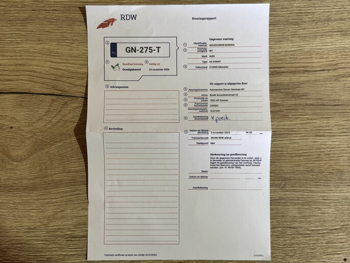• Nieuwe APK inclusief voortkomende kosten.