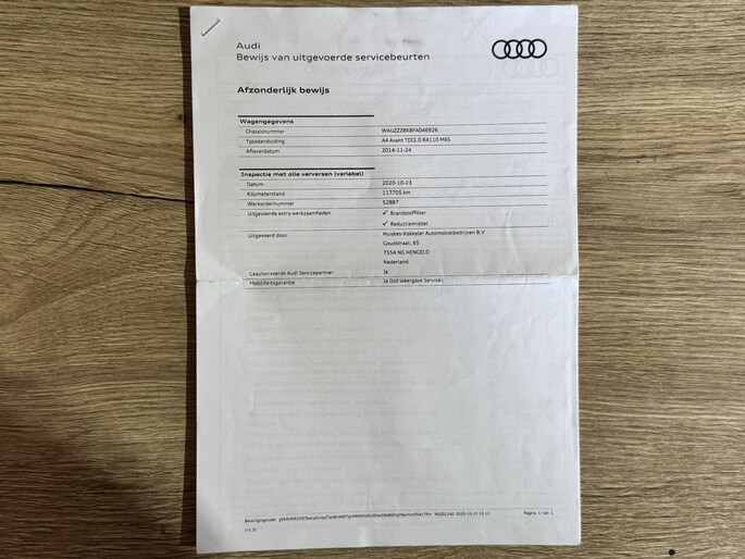 Deze A4 Avant komt uit 2014, heeft een kilometerstand van 218.029 km en beschikt over een APK tot 23-11-2026. Een complete en representatieve stationwagen die klaarstaat voor zijn volgende eigenaar.