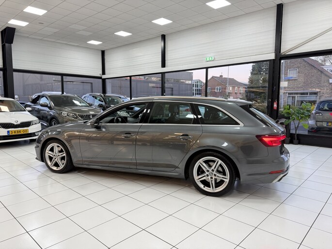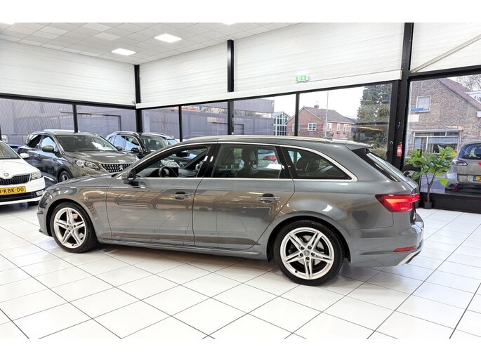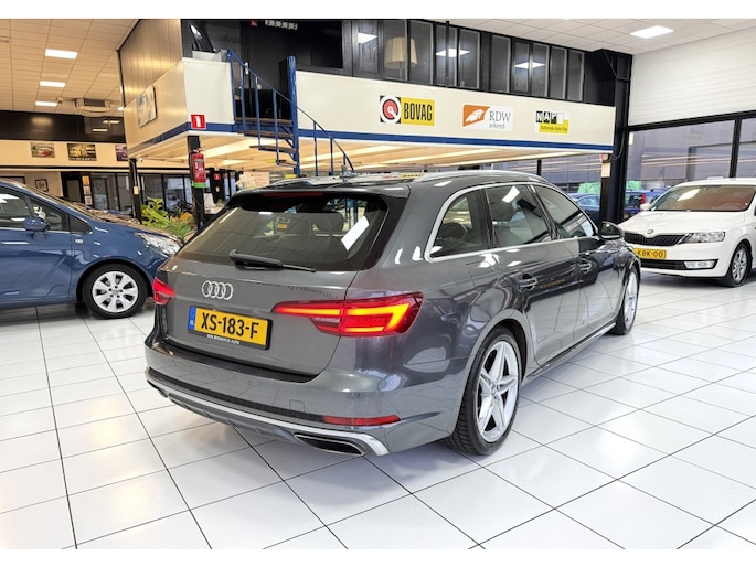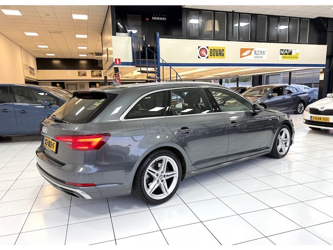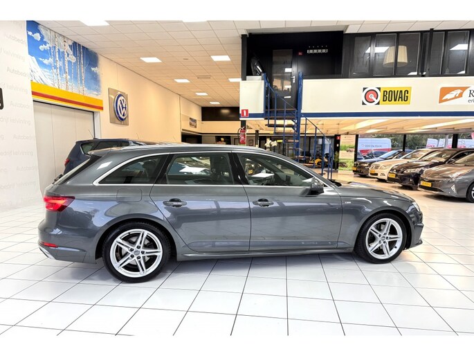 De Audi A4 Avant belichaamt de hoogste klasse, zichtbaar in zijn stijlvolle belijning en luxueuze binnenkant. Dit is zoals u van een typische Duitse auto kan verwachten. Een beetje meer aandacht en een stoere uitstraling? Daar zorgt de S-Line styling voor. De aandrijving van deze Audi wordt verzorgd door een viercilinder motor en een handgeschakelde zesversnellingsbak. Altijd een goede zitpositie bij iedere snelheid, dankzij de sportstoelen. De elektrisch bedienbare achterklep opent met een druk op de knop. De matrix LED-verlichting in de koplampen bestaat uit een raster van lichtpunten met maximale opbrengst. Bij tegenliggers past het systeem precies die punten aan die hinderlijk kunnen zijn. U behoudt maximaal zicht! Ook 18 inch lichtmetalen velgen, sportonderstel, halflederen bekleding, warmtewerend glas, dakspoiler en in delen neerklapbare achterbank zijn aan boord.