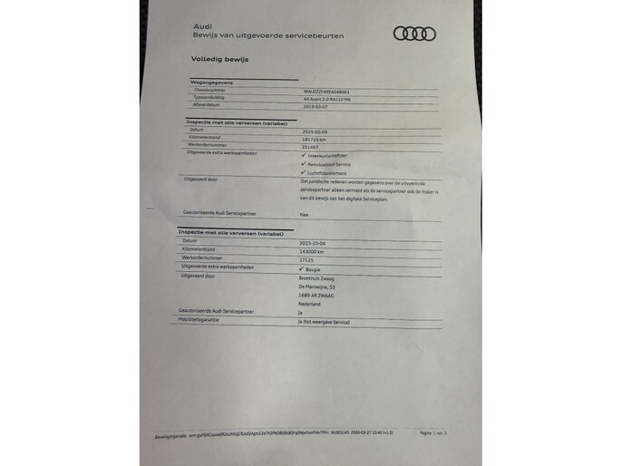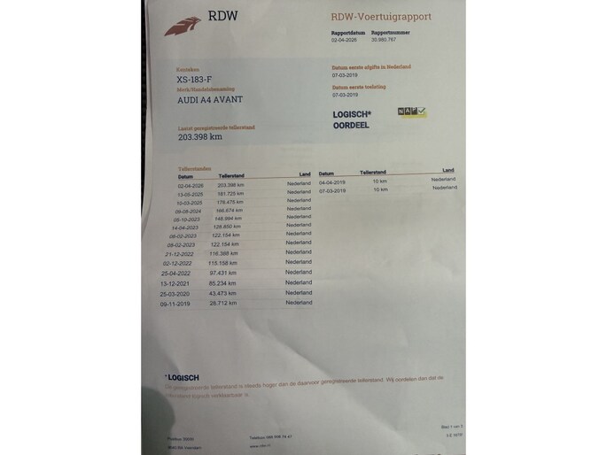 Kilometerstand gecontroleerd