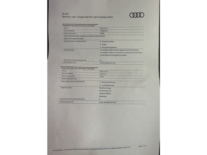 - Nieuwe / recente Apk-keuring