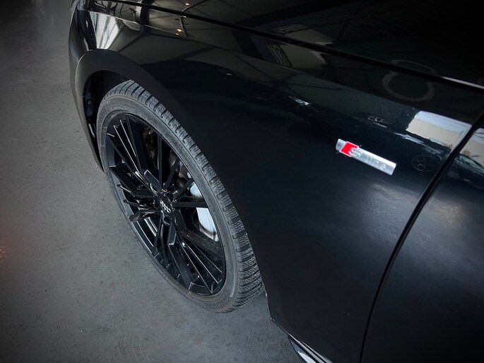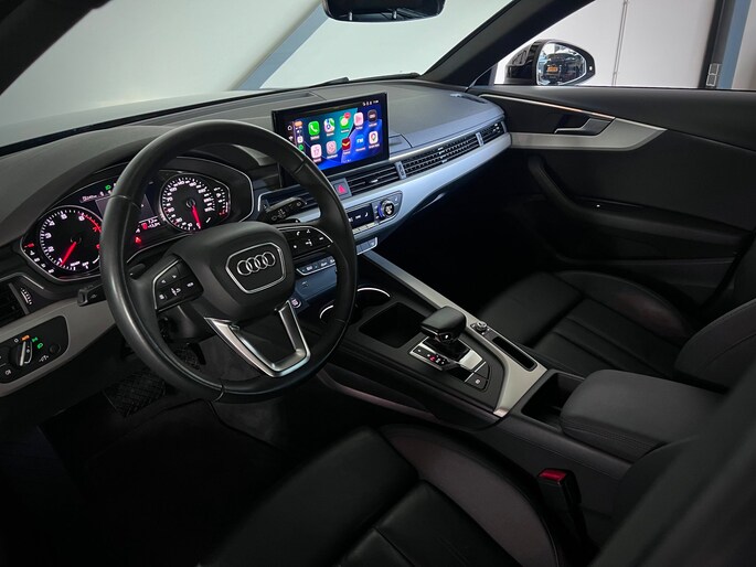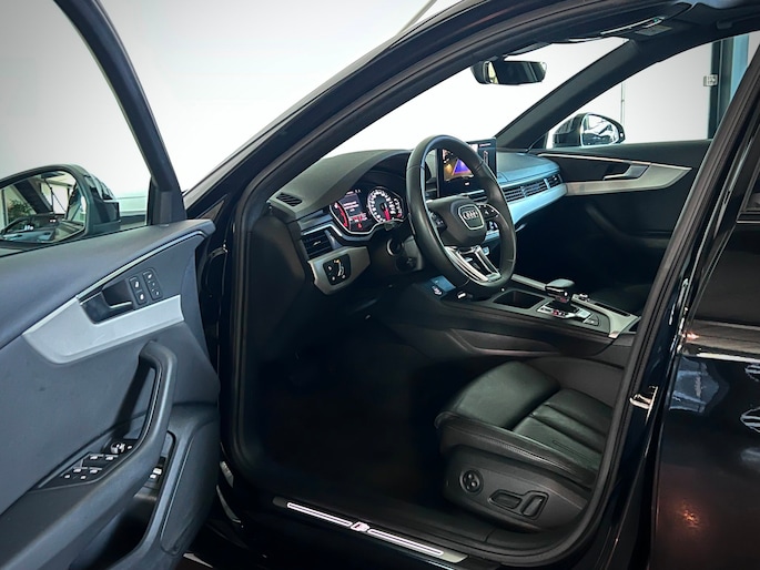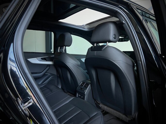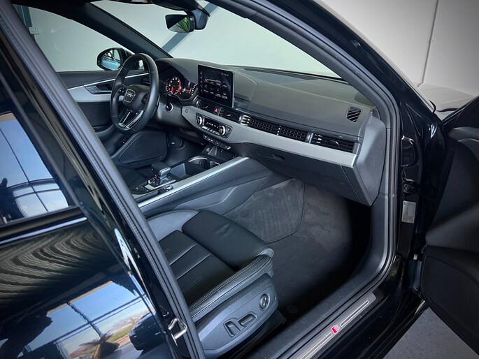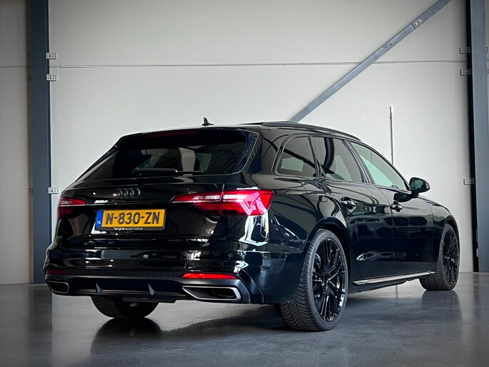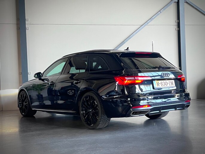 Audi A4 Avant 40 TFSI S-Line in de fraaie donkere zwart/zwart samenstelling.