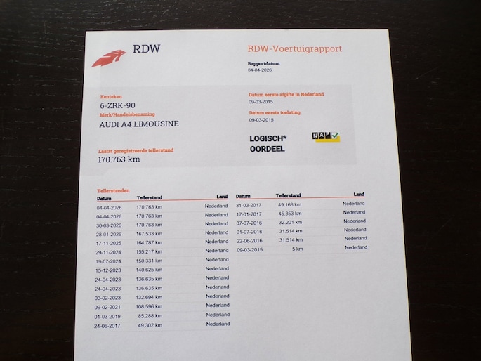 Kilometerstand gecontroleerd