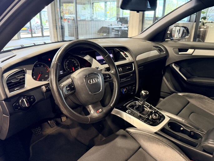 Het premiumgevoel dat deze Audi A4 Avant u geeft, is het gevolg van ver doorgevoerde kwaliteit in ieder facet. De uitgekiende techniek, de gedistingeerde vormgeving, het hoge afwerkingsniveau, het benadrukt allemaal het hoge niveau van deze auto. De S-Line styling accentueert het sportieve karakter van deze Audi. Hij heeft een benzinemotor en een handgeschakelde zesversnellingsbak. Voor het pittige uiterlijk én goed gesteund zitten zorgen de sportstoelen. Met de krachtige xenonverlichting heeft u optimaal zicht in het donker. Tot de uitrusting van deze Audi behoren ook 18 inch lichtmetalen velgen, sportonderstel, halflederen bekleding, in delen neerklapbare achterbank en verstelbare lendensteunen.