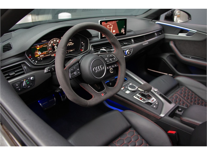Het sportieve karakter van deze RS5 komt ook buiten volledig tot zijn recht. Het Black Pack, RS Dynamic-pakket, panoramadak, sportuitlaat en Matrix LED-koplampen geven de auto een krachtige, elegante uitstraling die direct opvalt. Dealeronderhouden en in uitstekende staat, biedt deze Audi RS5 Sportback de ultieme combinatie van luxe, sportiviteit en technologische verfijning.