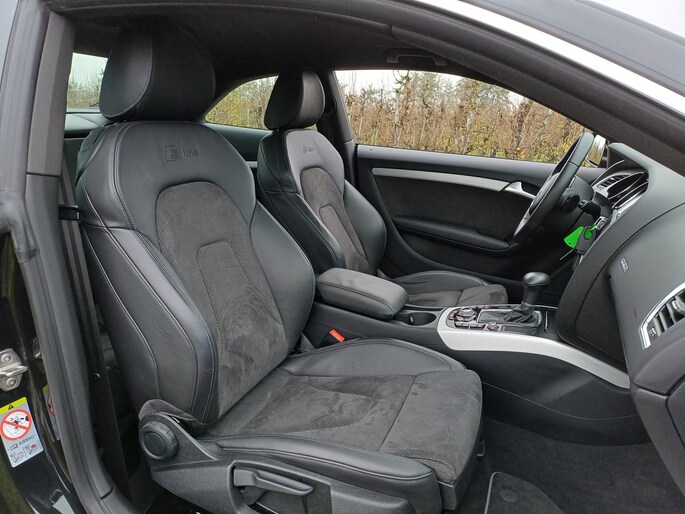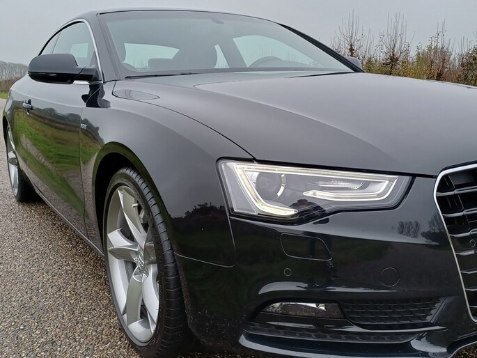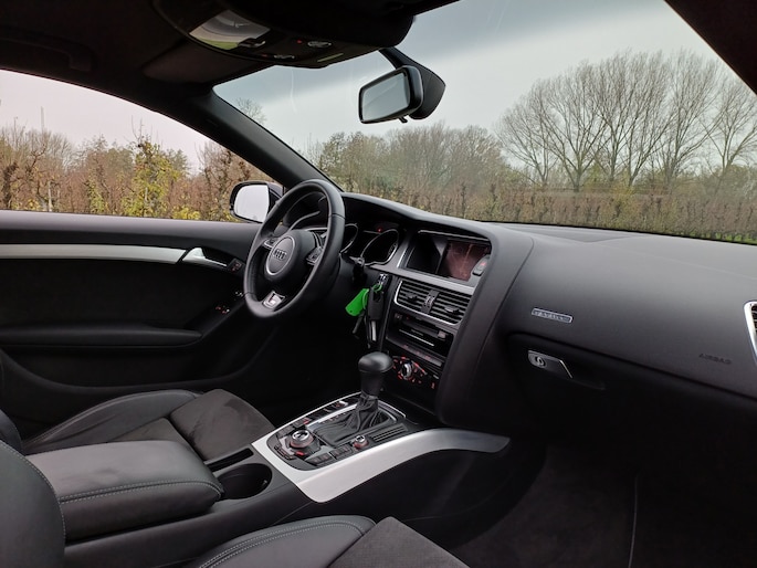 De auto is voorzien van een trekhaak en is een uitstekende caravantrekker. Naast de routeinformatie van het MMI navigatiesysteem kunt u muziek via het audio-installatiesysteem ook online beluisteren via bluetooth. De automatische airconditioning zorgt onder alle omstandigheden voor een prettige temperatuur. Parkeerplekken worden er niet ruimer op. Maar met de aanwezige parkeersensoren krijgt u deze Audi A5 Coupé zonder problemen op z'n plaats. Het drukke verkeer eist onderweg al uw aandacht op. Daarom is het goed dat deze Audi is voorzien van diverse systemen die u assisteren tijdens de rit. Een automatisch inschakelbare verlichting neemt het waar als het donker wordt of gaat schemeren, en schakelt dan automatisch de verlichting in. Op dezelfde manier "ziet" de regensensor de eerste spatjes regen en schakelt dan de ruitenwissers in, en als het harder gaat regenen zet hij de ruitenwissers ook in een snellere stand. Ook is de Audi uitgerust met: cruise control, lederen stuur, isofix-aansluiting, centrale deurvergrendeling met afstandsbediening en boordcomputer.
