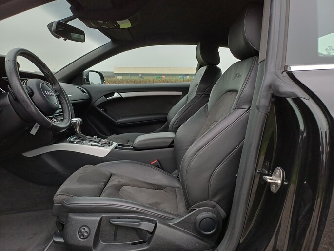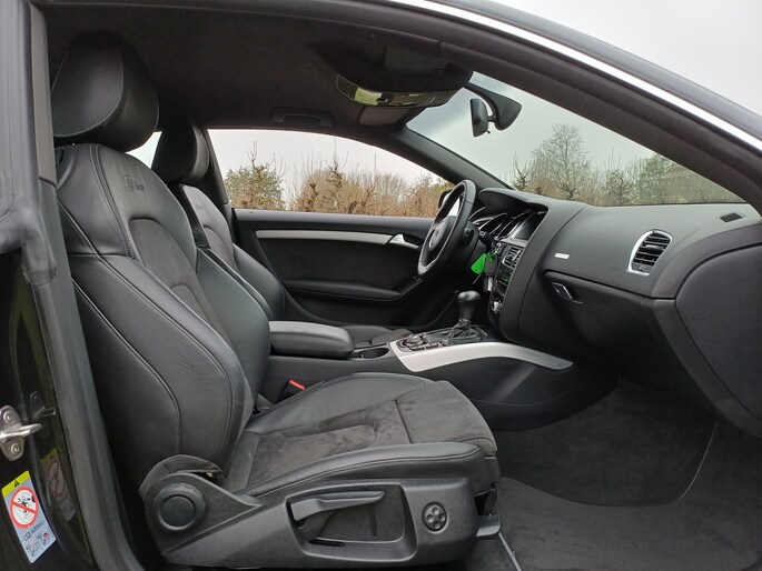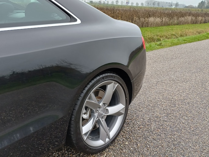 Let op! Trekhaak niet aanwezig. Kan geleverd en gemonteerd worden voor een meerprijs van Euro 1250,- .Deze Audi A5 Coupé bewijst haar klasse met een elegant uiterlijk en een comfortabele binnenruimte, onmiskenbaar een kwaliteitsauto uit Duitsland. Een aantrekkelijke en fraaie optie is de expressieve S-Line styling. Dankzij de zescilinder benzinemotor en de automatische transmissie, is het autorijden snel en comfortabel. 's Winters op pad gaan kan een behoorlijke uitdaging zijn. Daarom is deze Audi A5 Coupé voorzien van weldadige verwarmbare voorstoelen. Altijd een goede zitpositie bij iedere snelheid, dankzij de sportstoelen. Dankzij de xenonverlichting profiteert u in het donker van een krachtige en heldere lichtbundel. De uitmonstering van deze auto wordt gecompleteerd door onder meer 19 inch lichtmetalen velgen, sportonderstel en halflederen bekleding.