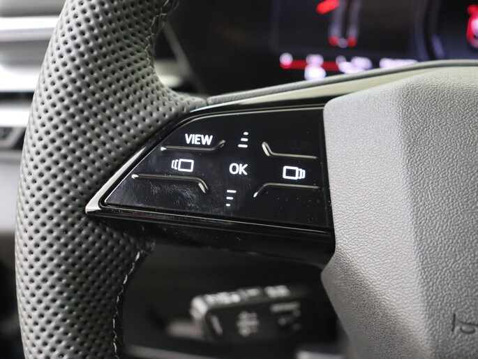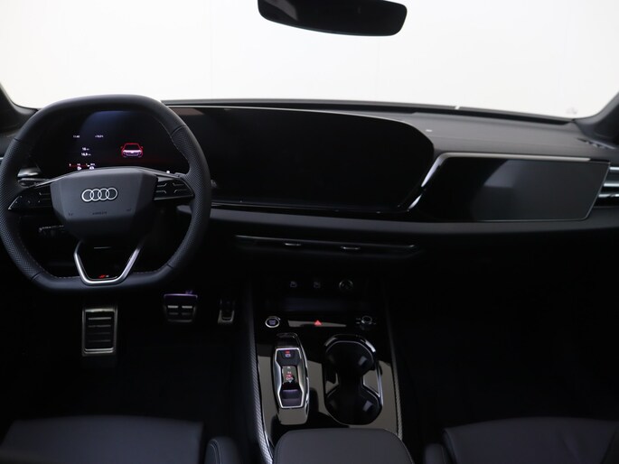 Interieur S line met sportstoelen (Sportstoelen voor, Bedieningselementen in zwart glas-optiek met haptische feedback inclusief uitgebreid aluminium optiek, Binnenspiegel frameloos, automatisch dimmend, Comfortmiddenarmsteun vóór, Hemelbekleding in stof zwart, Instaplijsten met aluminium inleg, verlicht en voorzien van de S-ruit, Interieurelementen bekleed met stof, Roestvrijstalen pedalen en voetsteun, Semi geïntegreerde hoofdsteunen, Sportstuurwiel, 3 spaaks, boven en onder afgevlakt inclusief schakelpaddels)