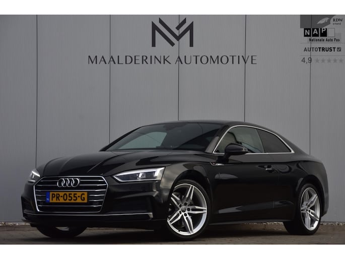 Een zeer nette, sportieve en complete Audi A5 Coupé 2.0 TFSI 190pk. De auto is, op de laatste beurt na, volledig Audi Dealer onderhouden en de onderhoudshistorie is netjes aanwezig. De A5 Coupe beschikt onder andere over het S-Line interieur en exterieur pakket, matrix led koplampen, dynamisch knipperlicht, lederen bekleding, sportstoelen, dodehoeksensor, stoelverwarming, bestuurdersstoel met geheugenfunctie, voorstoelen elektrisch verstelbaar, app-connect (o.a. spotify, flitsmeister en maps op het scherm), achteruitrijcamera, parkeersensoren voor en achter, digitale cockpit, startknop, verkeersbordherkenning, navigatiesysteem, buitenspiegels automatisch inklapbaar, cruise control, lane assist, airconditioning, 19'' lichtmetalen velgen, getint glas achter en de zwarte metallic lak.