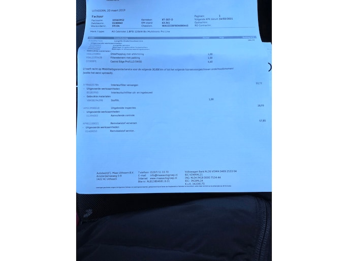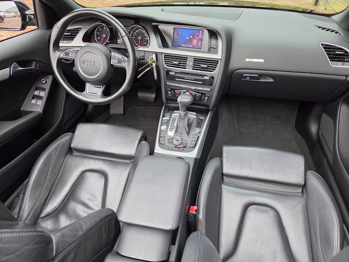 Prachtig uitgevoerde A5 Cabriolet Automaat, met diverse onderhoudsfacturen ter inzage. Met oa sportstoelen, lederen bekleding, 19 inch lichtmetaal, stoelverwarming en meer. Kleine lakbeschadiging bumper linksvoor, zie foto.
