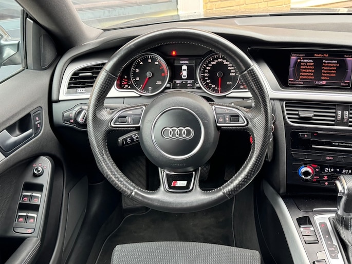 Keurig nette, en perfect onderhouden Audi A5 Sportback 1.8 TFSI 170pk Multitronic AUTOMAAT uit 2012, Originele NL-Geleverde auto in de sportieve S-LINE Uitvoering! Voorzien van o.a: Airco-Climatecontrol, MMI Multimediasysteem met Navigatie, 19' Lichtmetalen velgen met z.g.a.n. banden, Sportstoelen met half Lederen bekleding, Sportonderstel, Cruisecontrol etc.. Boekjes en 2 sleutels compleet aanwezig!