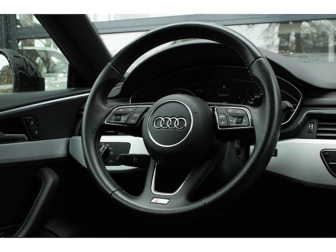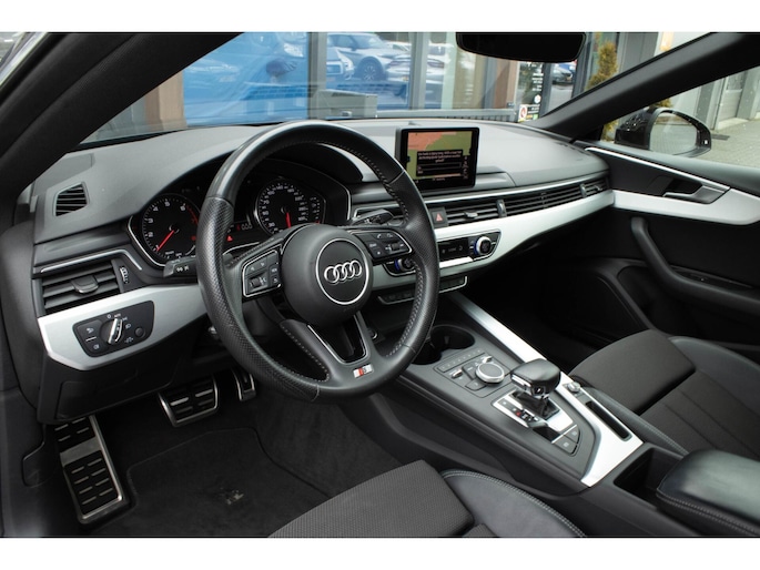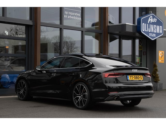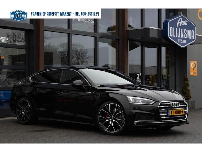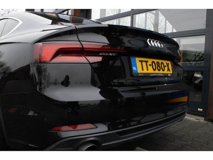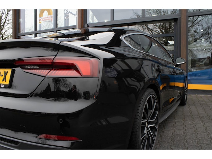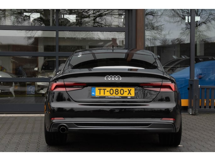 Omdat rijden een plezier mag zijn, staat deze Audi A5 Sportback enthousiast te glimmen in de showroom. Technisch in topconditie, strak in de lak... echt een droomauto! Voor liefhebbers van rijplezier is de S-Line styling een belangrijke reden om voor deze auto te kiezen. Hij heeft een benzinemotor en een automatische transmissie. Comfortabel zitten, ook als de rit onstuimig is? Dat kan met de sportstoelen. Een handige voorziening op deze auto is de elektrische achterklep die u op afstand kunt openen. Ook is de auto voorzien van: 20 inch lichtmetalen velgen, LED koplampen, sportonderstel, halflederen bekleding, warmtewerend glas en in delen neerklapbare achterbank.