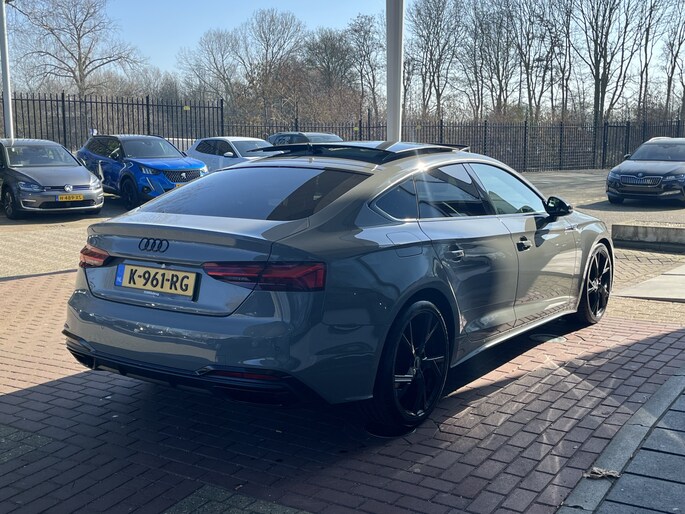 Dankzij hoogwaardige techniek en verschillende veiligheidssystemen, biedt deze Audi A5 Sportback je optimale veiligheid en comfort tijdens iedere rit. Sportief, stoer en net even anders dan anders, mede dankzij de S-Line styling. In deze auto vind je een benzinemotor en een automatische transmissie. Essentiële functies activeren gaat met één druk op de knop: bij het elektrisch bediende glazen panorama dak én de elektrisch bedienbare achterklep. Voor het pittige uiterlijk én goed gesteund zitten zorgen de sportstoelen. De geavanceerde matrix LED-verlichting in de koplampen levert maximaal helder zicht en past zich subtiel aan zodra er een tegenligger komt. Zonder lichtkwaliteitsverlies! Verder is de Audi uitgerust met: 18 inch lichtmetalen velgen, sportonderstel, warmtewerend glas, in delen neerklapbare achterbank, LED-achterlichten en verstelbare lendensteunen.