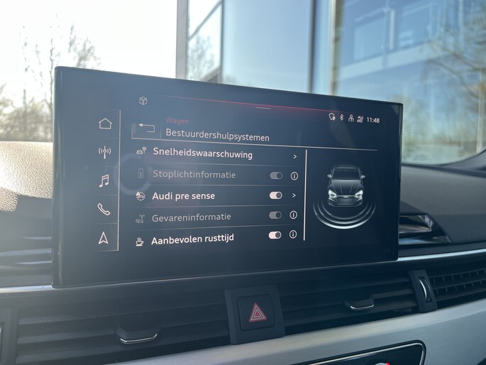 In de Audi A5 Sportback heeft jouw veiligheid en die van jouw omgeving prioriteit. Een belangrijke bijdrage aan de veiligheid onderweg levert de verkeersbord-detectie in deze Audi. Veel aanrijdingen bestaan uit kop-staartbotsingen. De forward collision warning reduceert dat risico aanzienlijk. Bovenop deze veiligheidsfeatures heeft deze Audi bovendien hill hold functie, brake assist en bandenspanningcontrolesysteem.