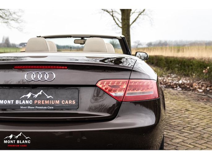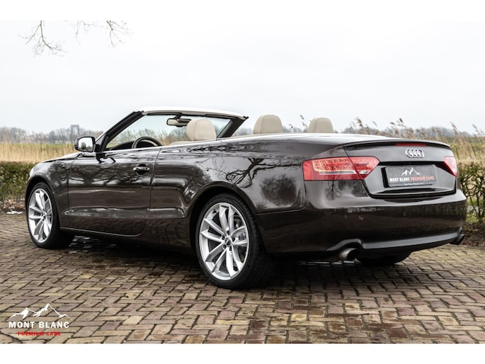 Deze Audi A5 Cabriolet 2.0 TFSI Quattro uit mei 2009 heeft 241.900 kilometer ervaring, maar laat je daar vooral niet door misleiden. Wie hem ziet, merkt direct hoe uitzonderlijk goed hij erbij staat. De lak in Teak Brown Metallic geeft de auto een warme, chique uitstraling die perfect past bij het elegante lijnenspel van de A5 Cabrio. In combinatie met de 19 inch lichtmetalen velgen en het sportonderstel staat hier een cabrio die zowel stijlvol als krachtig oogt en precies de juiste uitstraling heeft voor de zomer.