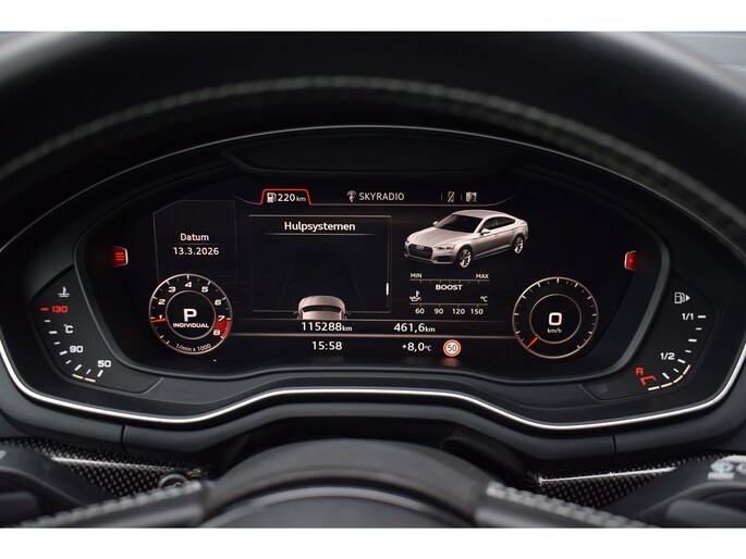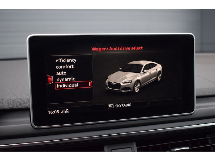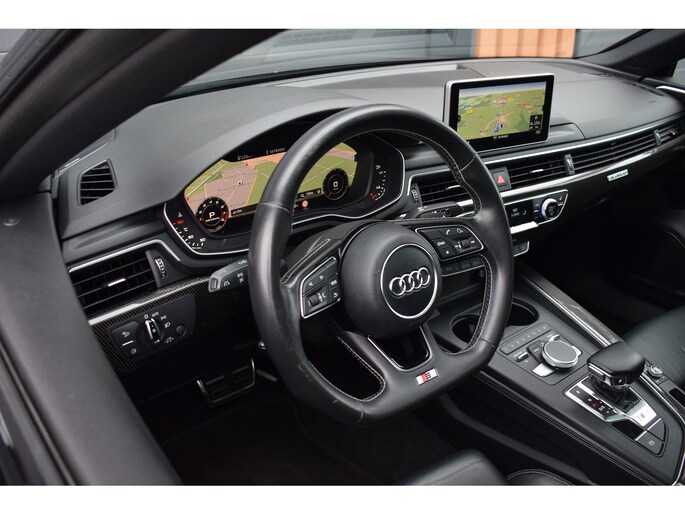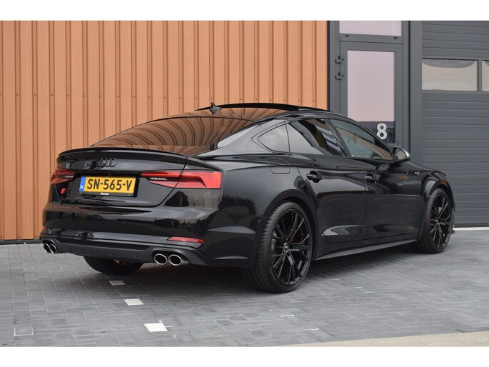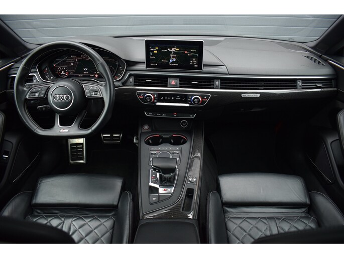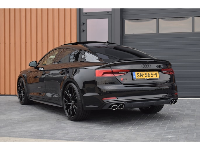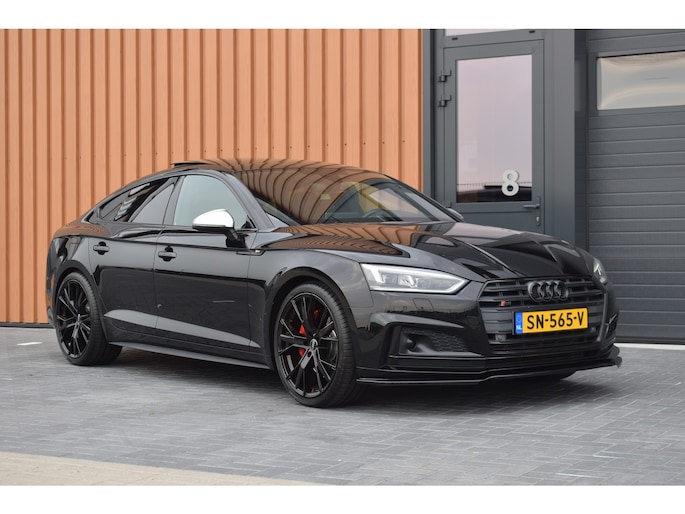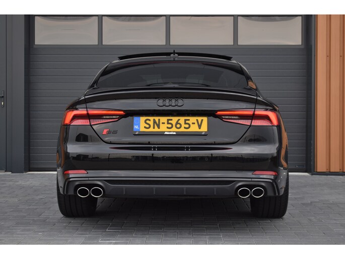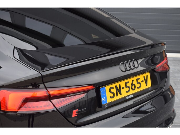 Audi S5 Sportback 3.0 V6 TFSI 354pk Quattro. Uitgevoerd met o.a.: Panoramadak, Lederen interieur met RS Sportstoelen met elektrisch verstelbare en verwarmde voorstoelen, Bang&Olufsen soundsysteem, Elektrisch bedienbare kindersloten, Centrale vergrendeling met keyless entry, Matrix LED koplampen, LED achterlichten, Dynamische knipperlichten voor en achter, Lichtmetalen velgen 20", Navigatiesysteem MMI Plus, Digitale radio ontvangst, Virtual Cockpit, Climate control, Cruise control, Lane Assist, Side Assist, Lederen multifunctioneel sportstuur, Carbon dasboardinleg, Parkeersensoren voor en achter, Achteruitrijcamera, Wegklapbare trekhaak.