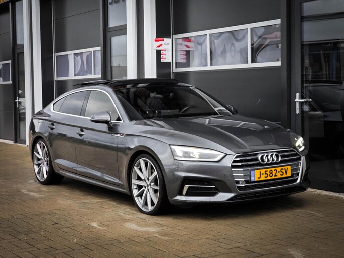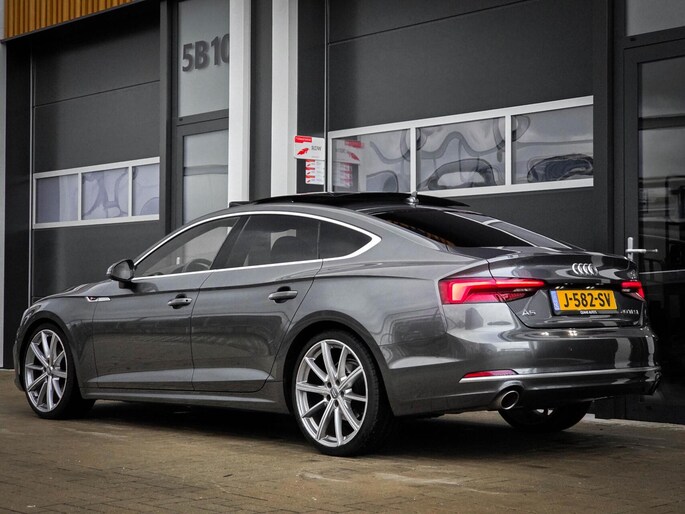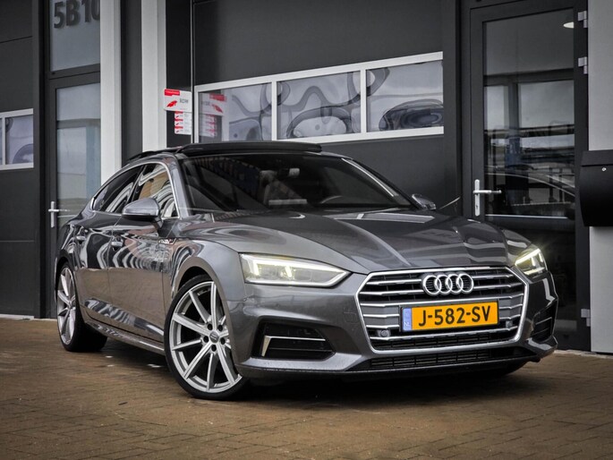 Zeer complete Audi A5 Sportback 40 TFSI met 191 pk en automaat. Uitgevoerd met 3x S-Line (interieur, exterieur en onderstel) waardoor de auto zowel sportief rijdt als oogt. Luxe uitgevoerd met panoramadak, virtual cockpit en sfeerverlichting.
