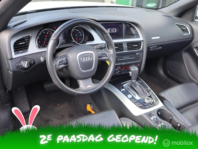 Het interieur van deze Audi A5 Cabriolet beschermt u als een veilige cocon. Het onderstel is ontworpen om de scherpste bochten en de slechtste wegen aan te kunnen en de motor reageert alert op ieder commando. Deze auto wíl gewoon gezien worden: kijk maar naar de sportieve S-Line styling. In deze auto vindt u een benzinemotor en een automatische transmissie. De auto is uitgerust met stijlvolle, lederen bekleding. Neem plaats op de comfortabele stoelen. Dankzij de elektrische bediening en het geheugen is het eenvoudig om hierin de beste zitpositie te vinden. Een handige voorziening op deze auto is de elektrische achterklep die u op afstand kunt openen. Xenonverlichting zorgt voor een krachtige en heldere lichtbundel. Tot de voorzieningen van deze auto behoren 18 inch lichtmetalen velgen, sportonderstel, warmtewerend glas, zwarte hemelbekleding, verstelbare lendensteunen en snelheidsafhankelijke stuurbekrachtiging.
