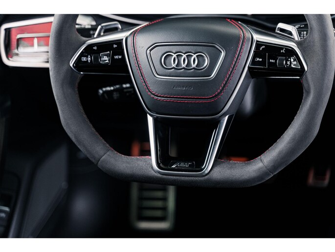 De ABT sportuitlaat met vier 102 mm eindpijpen en carbon afwerking geeft de auto een diepe, krachtige sound die perfect past bij zijn karakter. Dit is niet alleen snelheid, dit is beleving.