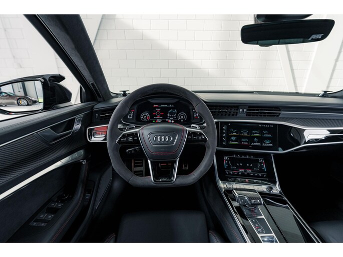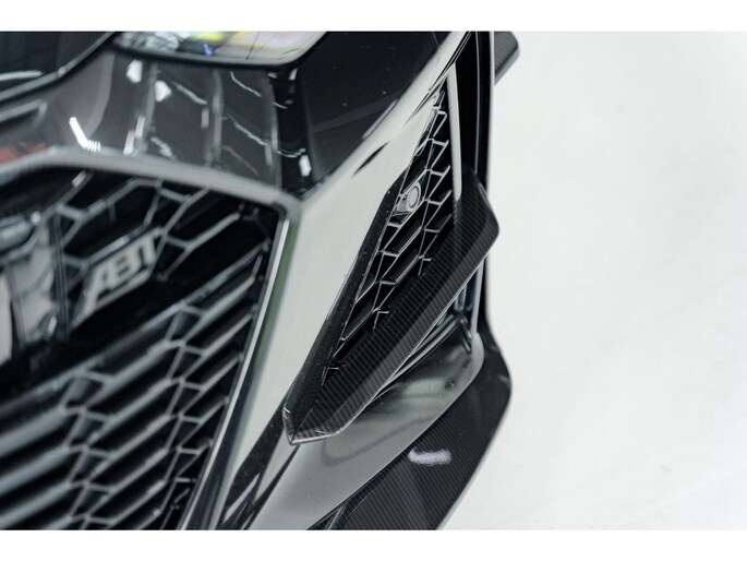 - Full ABT Aerodynamics Package (visible carbon gloss) Front lip with ABT front blades Front grille add-on with RS6-R logo Front flics and trim elements Mirror caps in carbon Side skirt extensions Rear