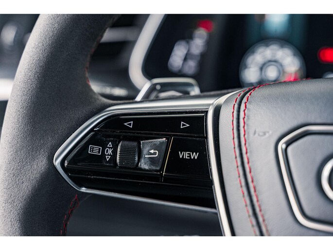 - RS Designpakket Rood Audi exclusive Dashboard in fijn Nappa leder Middenconsole zijkanten in Alcantara Deurinzetten in leder Vloermatten met contraststiksels en handtekening Veiligheidsgordels in zwa