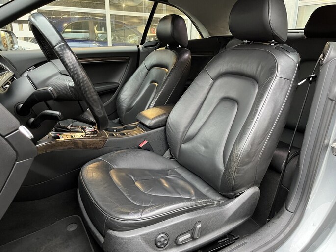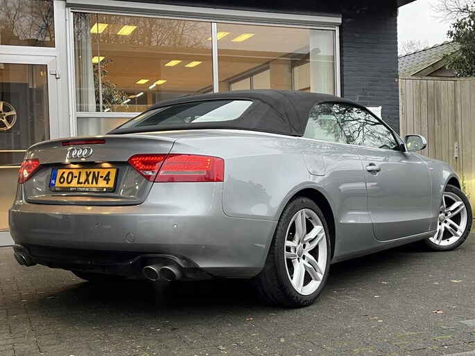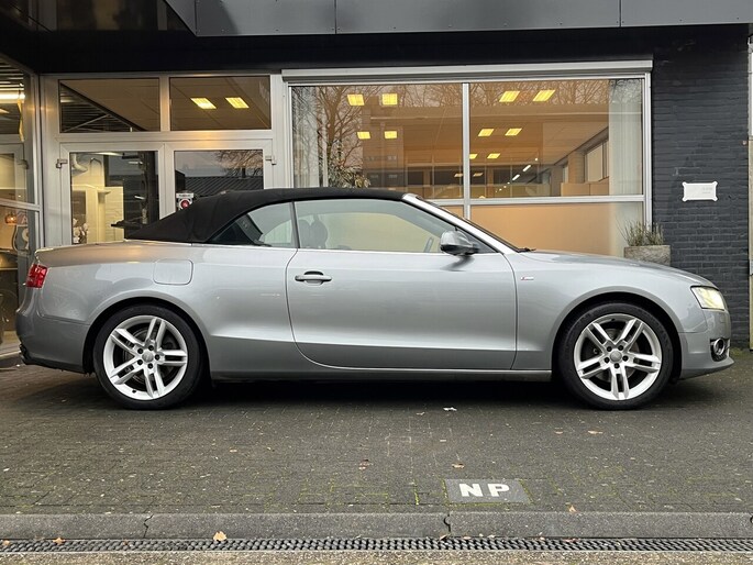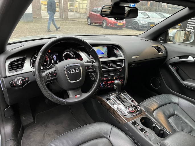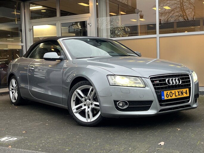 Zodra de zon zich laat zien, kunt u heerlijk genieten achter het stuur van deze cabriolet. Met een auto als deze Audi A5 Cabriolet komt u absoluut goed voor de dag. Deze auto komt uit 2009. De aandrijving van deze Audi wordt verzorgd door een zescilinder benzinemotor en een automatische transmissie. Mooi hoe luxe en gemak hier samengaan. Een fraai lederen interieur en een elektrisch bedienbare achterklep. Neem plaats op de comfortabele stoelen. Dankzij de elektrische bediening en het geheugen is het eenvoudig om hierin de beste zitpositie te vinden. Xenonverlichting zorgt in het donker voor beter zicht. Bij de uitrusting van deze auto horen onder meer 17 inch lichtmetalen velgen, warmtewerend glas, elektrisch verstelde en verwarmde buitenspiegels, verstelbare lendensteunen, verwarmde ruitensproeiers en elektrisch bediende ramen.