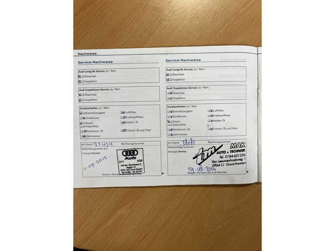 Onderhoudsboekjes: Aanwezig