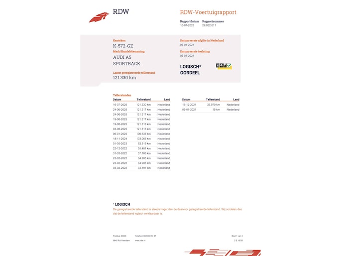 Kilometerstand gecontroleerd