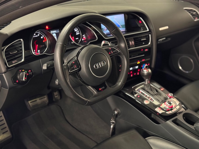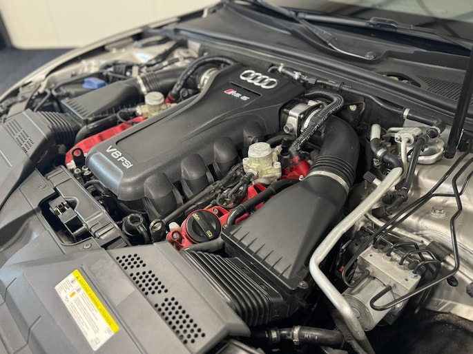 Deze Audi RS5 uit 2014 is niet zomaar een sportcoupé , dit is een eerbetoon aan echte autoliefhebbers. Onder de motorkap ligt het befaamde 4.2 FSI V8-motorblok dat met zijn 450 pk en brute sound een uitstervend ras vertegenwoordigt. Deze motor wordt niet meer geproduceerd, wat deze RS5 tot een zeldzame en gewilde machine maakt.