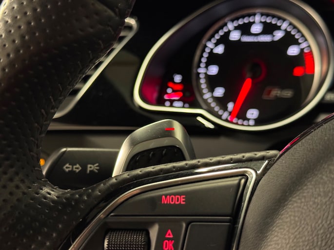 Aangepast onderstel en complete race-uitlaatsysteem zorgen voor een messcherpe wegligging en een soundtrack waar geen speakerinstallatie tegenop kan. Ultieme rijbeleving! Met slechts 84.668 km op de teller is deze RS5 niet alleen technisch in topconditie, maar ook nog eens zeldzaam fris voor zijn leeftijd.