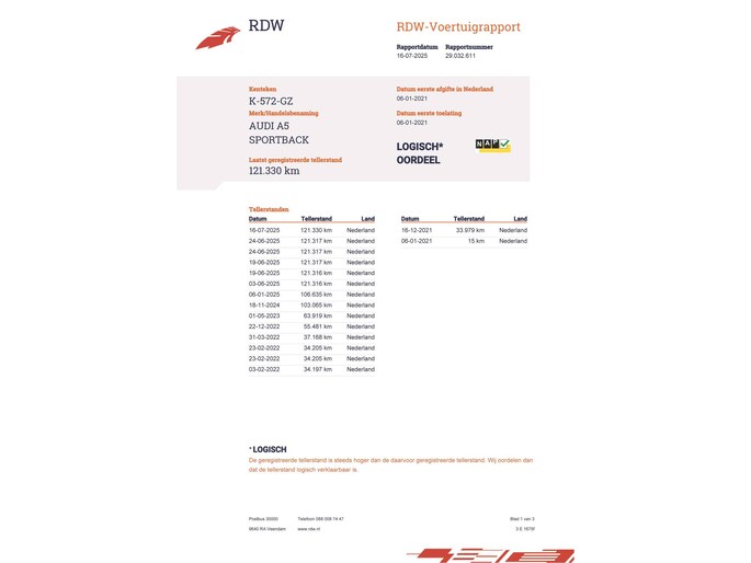 Kilometerstand gecontroleerd