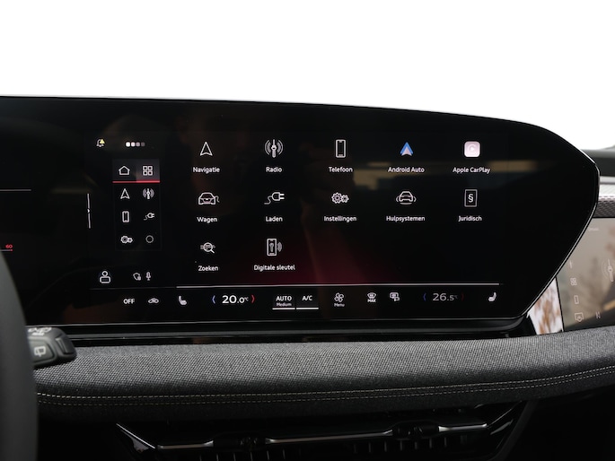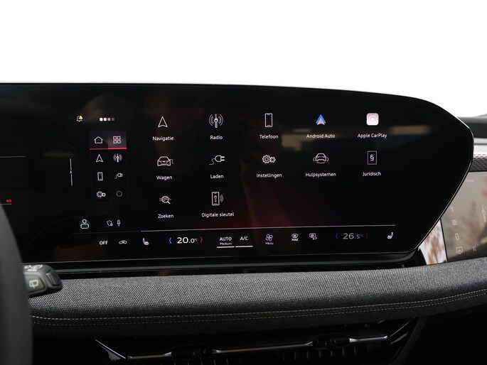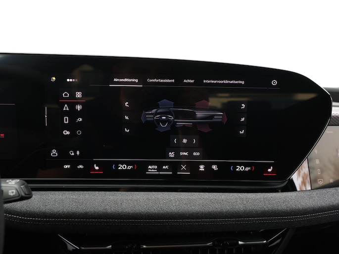 Zoals je mag verwachten van deze Audi A6 e-tron Avant is hij uitgerust met een reeks aan actieve veiligheidssystemen. Een belangrijke bijdrage aan de veiligheid onderweg levert de verkeersbord-detectie. Met het Lane-keeping systeem ga je nooit onbedoeld over de streep. Onbedoeld bumperkleven is er niet bij, dankzij de forward collision warning. Die waarschuwt direct als een botsrisico met je voorligger dreigt. De veiligheid van deze auto wordt verder verhoogd door dodehoekdetectie, hill hold functie, brake assist en vermoeidheidsherkenning.
