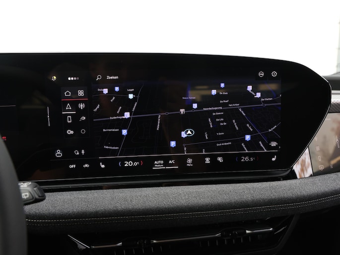 Altijd de benodigde functies in beeld? Het digitale dashboard zorgt ervoor. Dankzij de 360 graden camera op de auto, wordt manoeuvreren in smalle straatjes ineens veel eenvoudiger. Adaptive cruise control is een comfortabele en veilige optie. Het systeem reguleert de snelheid en houdt automatisch afstand tot jouw voorligger. Een slim verborgen extra is de elektrisch inklapbare trekhaak. Met Connected Services wordt iedere rit nóg veiliger. De uitrusting van deze Audi is met dashboard met spraakbediening, full map navigatiesysteem, kruisend verkeer detectie, electronic climate control, draadloos opladen en DAB ontvangst behoorlijk compleet.