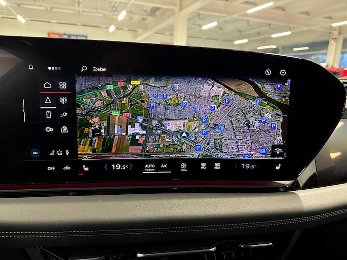 Dankzij het digitale dashboard leest u alle benodigde info gemakkelijk en overzichtelijk af. De 360 graden camera wordt mogelijk gemaakt door vier camera's die tezamen werken om zo een uitgebreid zicht te bieden, wat van grote waarde is bij het navigeren door smalle straatjes en parkeerplekken. Adaptive cruise control is een comfortabele en veilige optie. Het systeem reguleert de snelheid en houdt automatisch afstand tot uw voorligger. Hoe is het met de banden, de accu en andere onderdelen? Connected Services maakt het inzichtelijk, 24/7 via de app. Onderweg kunt u veilig genieten van het audio-installatiesysteem met DAB-radio en het full map navigatiesysteem. Want in deze Audi bedient u ze vanaf het stuurwiel of met uw stem. De uitrusting van deze Audi is met WIFI-hotspot, kruisend verkeer detectie, electronic climate control, draadloos opladen, regensensor en sportstuurwiel behoorlijk compleet.