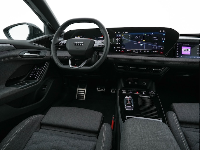 De Audi A6 Avant e-tron S edition is een volledig nieuwe elektrische stationwagen op het geavanceerde PPE-platform (Premium Platform Electric). Uitgevoerd in Plasma Blue Metallic met interieur in “Kaskade” stof en PU-leder in grijs, combineert deze Avant futuristische technologie, extreem lage luchtweerstand en sportieve S line styling met indrukwekkende elektrische prestaties.