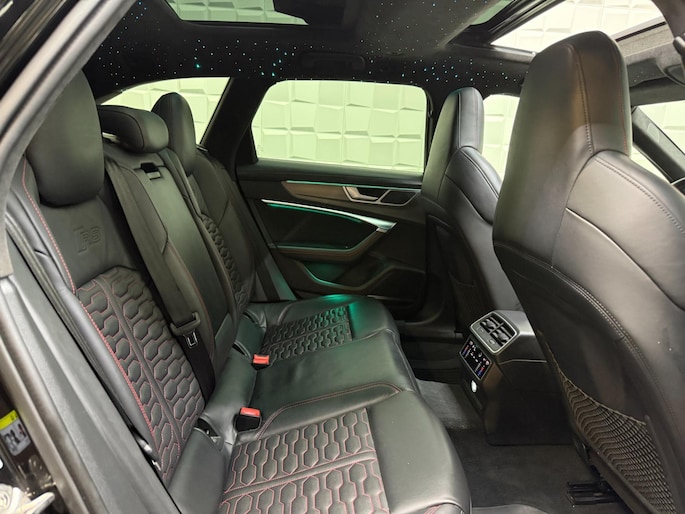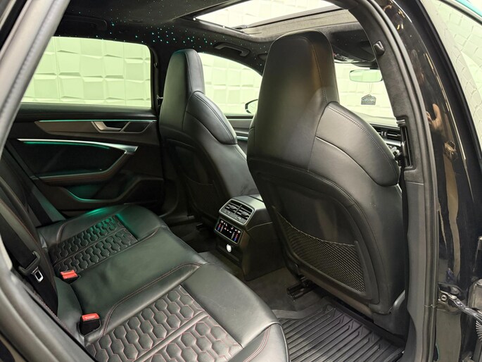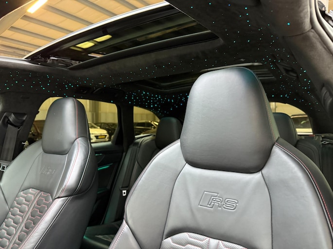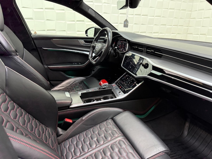 Auto's als deze Audi RS6 Avant bieden tegelijk rijdynamiek, comfort en degelijkheid. Lekker sportief en een tikkie stoer: de S-Line styling geeft een hele dynamische uitstraling. Een krachtige motor geeft deze auto zijn sportieve prestaties. Vierwielaandrijving verdeelt de aandrijfkracht over de wielen en zorgt voor meer grip. Stel u voor: zoevend over de snelweg terwijl het gulle daglicht het lederen interieur binnenvalt door het elektrisch bediende glazen panorama dak. En wat gemak betreft: daar zorgt onder andere de elektrisch bedienbare achterklep voor. U past de stoelen moeiteloos aan, ze zijn elektrisch in te stellen en hebben bovendien een geheugen. Deze auto levert de ultieme rijervaring met eersteklas functies zoals stoelverwarming, een verwarmbare achterbank en een verwarmbaar stuur. Dit is een auto in het wat hogere segment; dat merkt u bijvoorbeeld aan de luchtvering. In deze auto profiteert u onder andere ook van: 22 inch lichtmetalen velgen, LED koplampen, warmtewerend glas, in delen neerklapbare achterbank, LED-achterlichten en verstelbare lendensteunen.