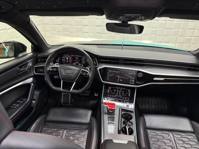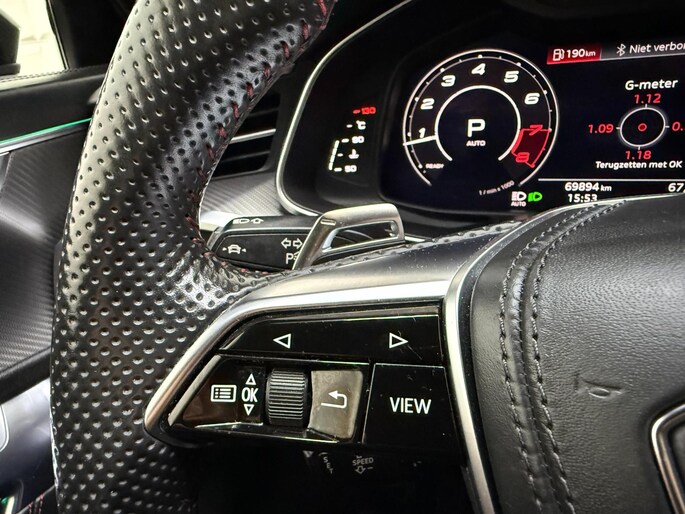 De nieuwste veiligheidssystemen komen in deze Audi RS6 Avant samen. In het instrumentarium ziet u tijdens de rit ook de belangrijkste verkeersborden aangegeven, die de auto automatisch voor u leest. Met het Lane-keeping systeem gaat u nooit onbedoeld over de streep. Actieve dodehoekdetectie geeft een waarschuwingssignaal wanneer een ander voertuig in uw dode hoek rijdt. Dit verkleint de kans op een aanrijding. De auto is ook uitgerust met head-up display, accident avoidance system, forward collision warning system, nachtzichtassistentie, hill hold functie en brake assist.