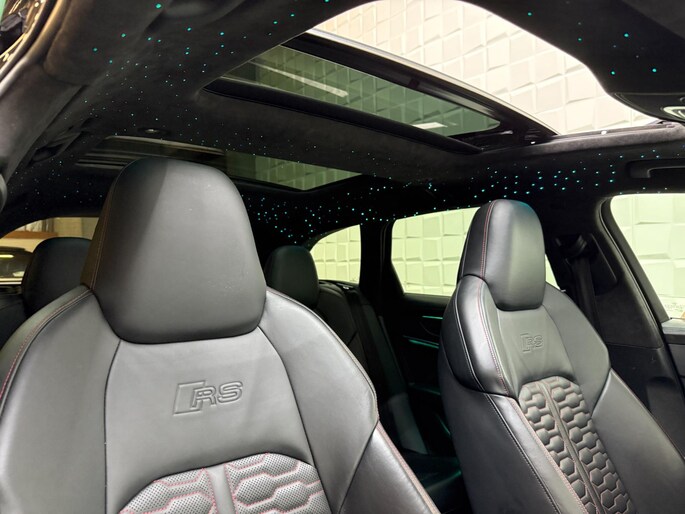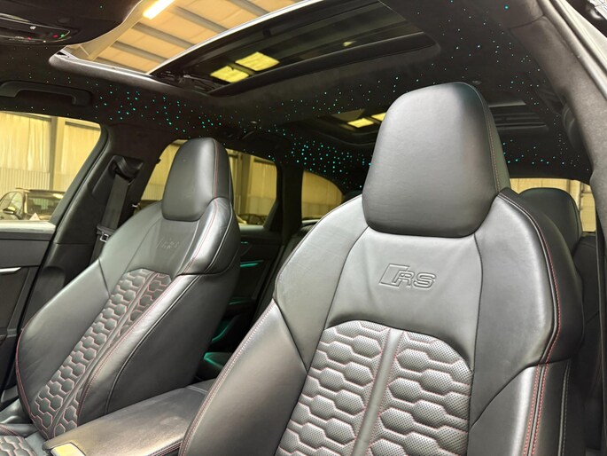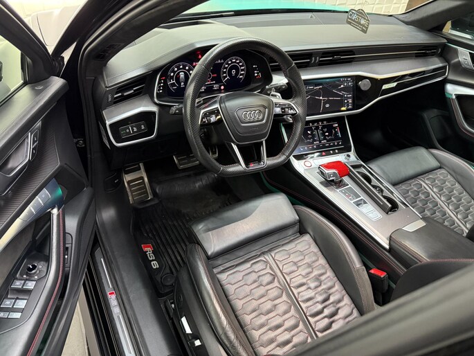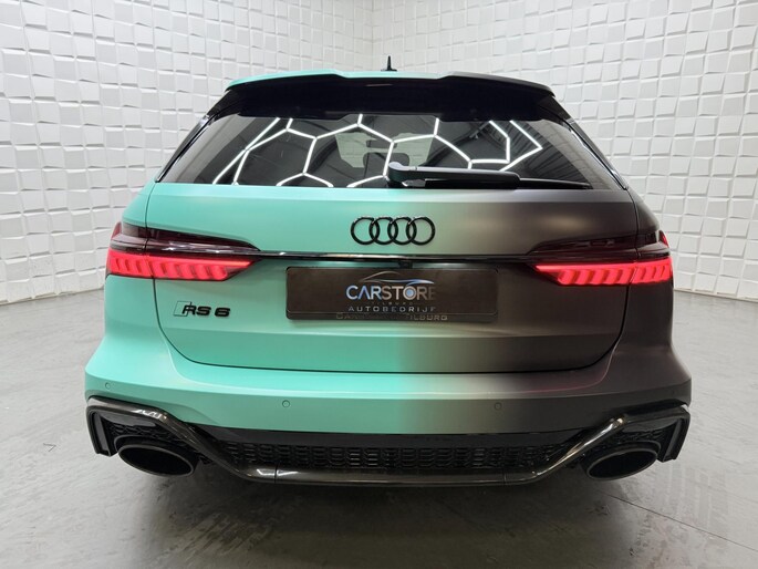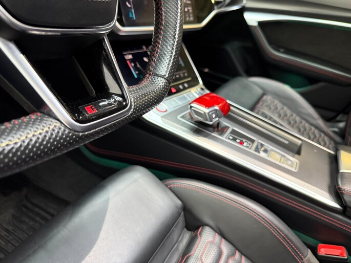 Auto's als deze Audi RS6 Avant bieden tegelijk rijdynamiek, comfort en degelijkheid. Lekker sportief en een tikkie stoer: de S-Line styling geeft een hele dynamische uitstraling. Een krachtige motor geeft deze auto zijn sportieve prestaties. Vierwielaandrijving verdeelt de aandrijfkracht over de wielen en zorgt voor meer grip. Stel u voor: zoevend over de snelweg terwijl het gulle daglicht het lederen interieur binnenvalt door het elektrisch bediende glazen panorama dak. En wat gemak betreft: daar zorgt onder andere de elektrisch bedienbare achterklep voor. U past de stoelen moeiteloos aan, ze zijn elektrisch in te stellen en hebben bovendien een geheugen. Deze auto levert de ultieme rijervaring met eersteklas functies zoals stoelverwarming, een verwarmbare achterbank en een verwarmbaar stuur. Dit is een auto in het wat hogere segment; dat merkt u bijvoorbeeld aan de luchtvering. In deze auto profiteert u onder andere ook van: 22 inch lichtmetalen velgen, LED koplampen, warmtewerend glas, in delen neerklapbare achterbank, LED-achterlichten en verstelbare lendensteunen.