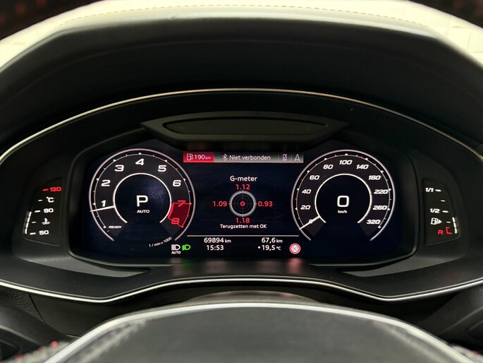 De nieuwste veiligheidssystemen komen in deze Audi RS6 Avant samen. In het instrumentarium ziet u tijdens de rit ook de belangrijkste verkeersborden aangegeven, die de auto automatisch voor u leest. Met het Lane-keeping systeem gaat u nooit onbedoeld over de streep. Actieve dodehoekdetectie geeft een waarschuwingssignaal wanneer een ander voertuig in uw dode hoek rijdt. Dit verkleint de kans op een aanrijding. De auto is ook uitgerust met head-up display, accident avoidance system, forward collision warning system, nachtzichtassistentie, hill hold functie en brake assist.