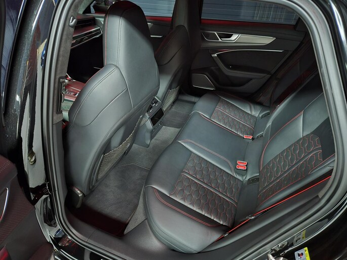 Het panoramadak draagt bij aan een lichte en ruimtelijke beleving in het interieur. Kenmerkende details van het ABT-pakket zijn onder andere specifieke aerodynamische aanpassingen, sportieve accenten en een aangepast uitlaatsysteem. Deze RS6R combineert het comfort van een luxe stationwagen met de prestaties van een volwaardige sportwagen.