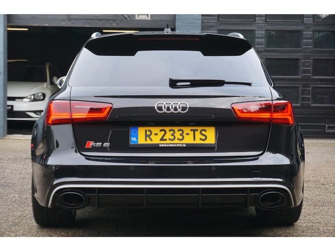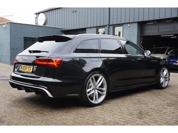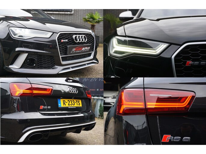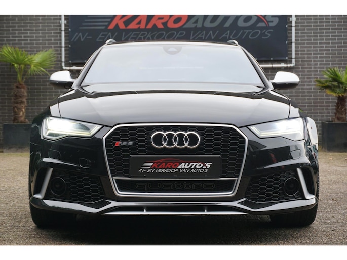 In topstaat verkerende Audi RS6 Avant 4.0 TFSI V8T C7 automaat 560PK S-tronic in de kleur Phantom zwart parelmoer voorzien van alle denkbare opties zoals; RS interieur, RS exterieur, RS kuipstoelen, luxe half lederen/alcantara sportbekleding, elektrisch verstelbare voorstoelen met memory, Headup display, Bose audiosysteem, achteruitrijcamera, led sfeerverlichting, matrix led koplampen, led achterlichten, led dynamische knipperlichten, grootbeeld navigatiesysteem, spraakbediening, keyless go/entry, Audi drive select met originele uitlaat kleppensysteem, automatische grootlicht assistent, adaptieve cruise control met stop/go, lane assist, gevarenherkenning, rem assistent, bordherkenning, multimediasysteem met usb/bluetooth/DAB+ radio/cd, parkeersensoren voor en achter, start/stopsysteem, privacy glas, privacy shades achter, climate control, lendensteun, elektrische ramen voor en achter, elektrisch bedienbare achterklep, elektrisch inklapbare/bedienbare/verwarmbare spiegels, multifunctioneel lederen RS stuurwiel met schakelflippers, led dagrijverlichting, led interieurverlichting, stoelverwarming voor en achter, bluetooth carkit, binnenspiegel automatisch dimmend, dimlichten automatisch, zwarte hemel, 21 inch lichtmetalen RS velgen met nieuwe Pirelli Pzero zomerbanden , stuurbekrachtiging, 2 sleutels en nog veel meer.