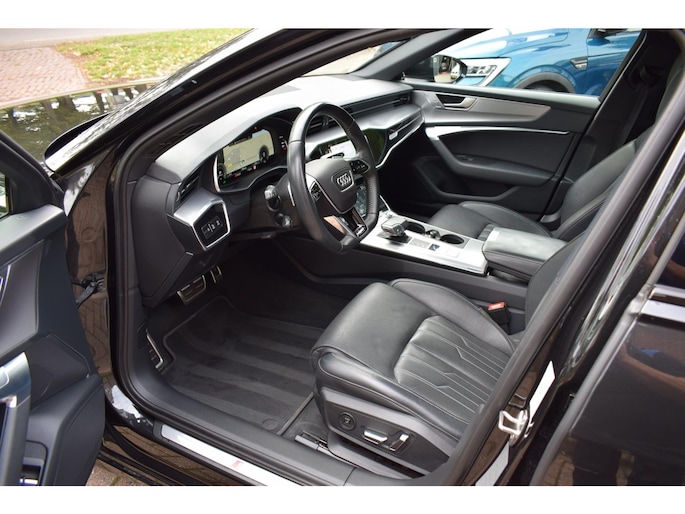 Als u gaat voor kwaliteit zonder compromis, dan is deze Audi A6 Avant 55 TFSI e quattro Competition S LINE een auto voor u. De verschillende elementen van de S-Line styling accentueren de dynamische lijnvoering van deze A6 Avant 55 TFSI e quattro Competition S LINE. Een viercilinder motor en een automatische transmissie zorgen voor de uitstekende prestaties van deze auto. Glibberen of glijden is er met deze vierwielaandrijving niet bij. Op deze 4WD kan je onder alle omstandigheden rekenen. Heerlijk comfortabel zitten, en genieten van stijlvolle kwaliteit? Deze auto heeft een fraai lederen interieur. Doe maar luxe! Neem plaats in de verwarmbare voorstoelen en voel hoe de massagefunctie zorgt voor verfrissende doorbloeding op de lange ritten. Neem plaats op de comfortabele stoelen. Dankzij de elektrische bediening en het geheugen is het eenvoudig om hierin de beste zitpositie te vinden. Een heerlijk zonnetje, of indrukwekkende wolkenpartijen? Bekijk ze onbelemmerd door het elektrisch bediende glazen panoramadak. De elektrisch bedienbare achterklep opent met een druk op de knop. Tot de voorzieningen van deze auto behoren 20 inch lichtmetalen velgen, bi-xenon koplampen, sportonderstel, warmtewerend glas, elektrische handrem en zwarte hemelbekleding.
