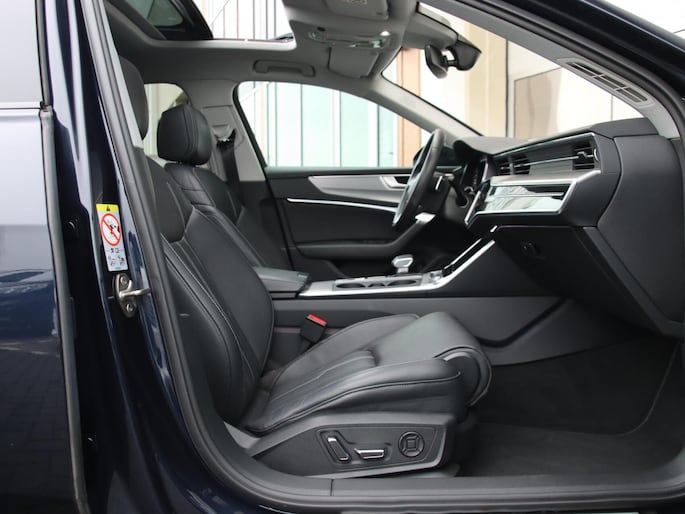 Het is een mooie auto, deze Audi A6 Avant uit 2021, hij heeft 84.011 kilometer gelopen. Omdat het oog ook wat wil, is de S-Line styling een heel aantrekkelijke plus. Met deze hybride Audi A6 Avant ben je niet voor één gat te vangen. Je kan kiezen voor elektrisch rijden of benzine. Met de voordelen van allebei. De hoogwaardige, lederen bekleding benadrukt de kwaliteit van deze Audi. Zit u goed? De stoelen zijn eenvoudig instelbaar dankzij de elektrische bediening met geheugen. Een heerlijk zonnetje, of indrukwekkende wolkenpartijen? Bekijk ze onbelemmerd door het elektrisch bediende glazen panoramadak. De elektrisch bedienbare achterklep opent met een druk op de knop. Perfect zicht bij nacht en slecht weer? Dat leveren de koplampen met matrix LED-verlichting. Bij de zeer complete uitrusting van deze auto behoren ook 20 inch lichtmetalen velgen, sportonderstel, adaptief dempingsysteem, warmtewerend glas, in delen neerklapbare achterbank en LED-achterlichten.