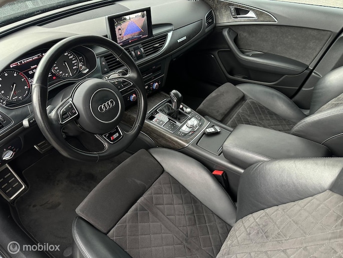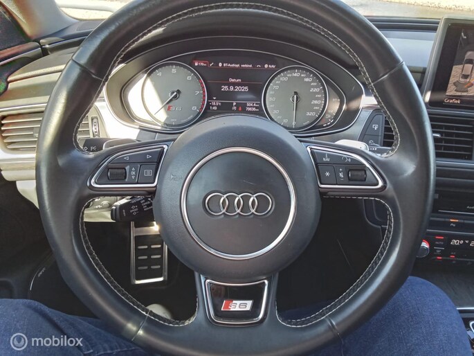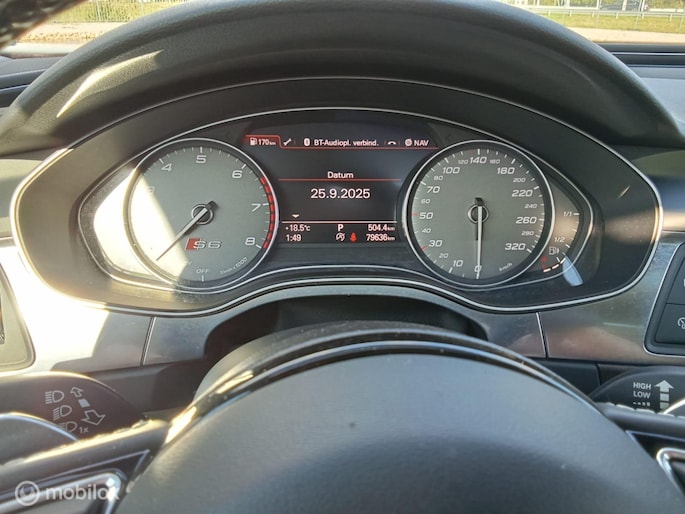 Een auto als de Audi S6 biedt een dynamiek en comfort die typerend zijn voor de producten van de Duitse autofabrikanten. Mag het een beetje exclusief en sportief? Mooi, want deze is uitgevoerd met S-Line styling. Hij heeft een benzinemotor en een automatische transmissie. We nemen u in gedachten even mee. Stop uw bagage moeiteloos achterin dankzij de elektrisch bediende achterklep, neem plaats achter het stuur en zie meteen het luxe lederen interieur. Even het elektrisch bediende glazen panorama dak open en rijden maar! Neem plaats op de comfortabele stoelen. Dankzij de elektrische bediening en het geheugen is het eenvoudig om hierin de beste zitpositie te vinden. Wat betreft gelijkmatigheid levert deze auto een topervaring. De luchtvering is echt een plus in comfort en veiligheid. En de comfortstoelen maken het helemaal af! Ook de passagiers achterin ervaren het ultieme comfort, dankzij de verwarmde achterbank. Perfect zicht bij nacht en slecht weer? Dat leveren de koplampen met matrix LED-verlichting. Bij de rijke uitrusting horen ook 19 inch lichtmetalen velgen, sportonderstel, adaptief dempingsysteem, warmtewerend glas, in delen neerklapbare achterbank en verstelbare lendensteunen.