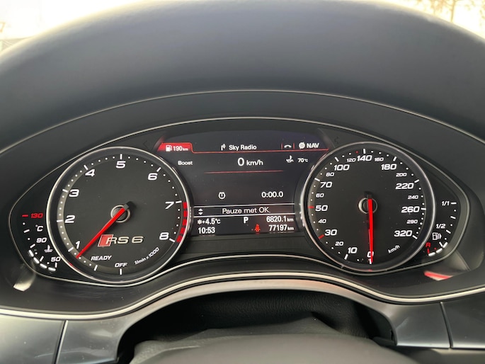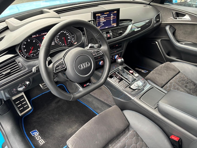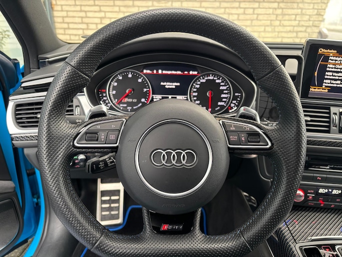 Bijzonder nette en uniek gespecte Audi RS6 Avant performance in de Porsche kleurRivierablau (Audi Individual Exclusive)