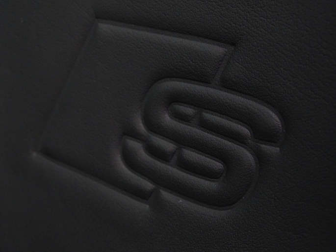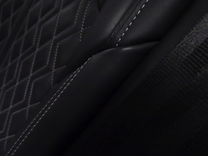 Upholstery: Leather / Sequenz fabric with embossed logo on front seat armrests